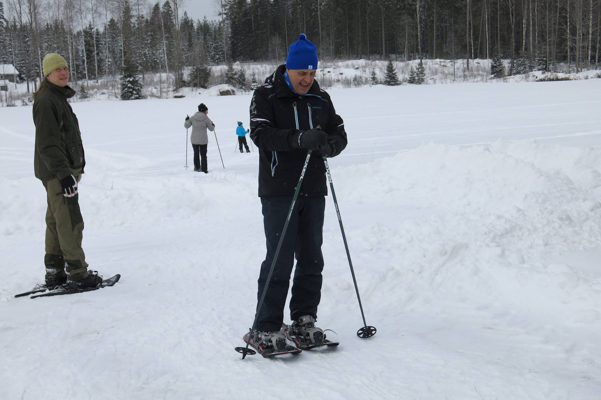 Latulaiset opastamassa lumikenkäilyyn Aholafarmin Latopirtillä lähiruokatapahtumassa, mukava laskiaissunnuntain ohjelma sisälsi lisäksi rekiajelua …..